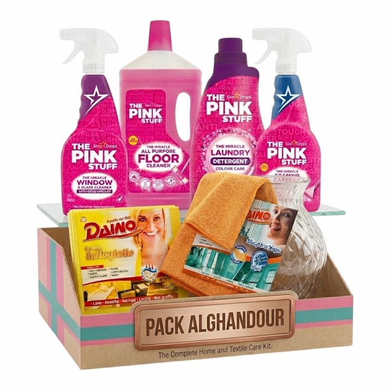 Pack Alghandour – Kit de Nettoyage Miracle The Pink Stuff & Chiffons Daino