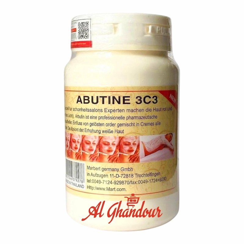 Disponible Chez Alghandour Market à Casablanca – La crème Abutine 3C3 250 g unifie le teint, atténue les taches pigmentaires et apporte hydratation et éclat à la peau grâce à l’arbutine et aux agents éclaircissants doux.