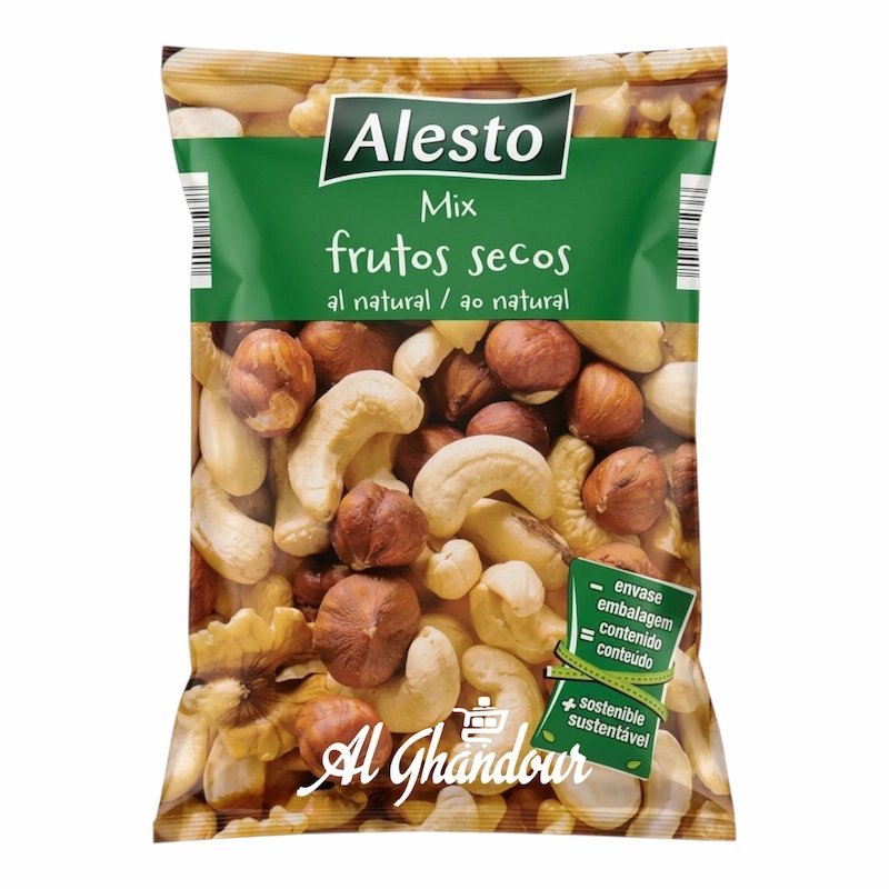 Le Alesto Natural Nut Mix 200 g est un mélange de fruits secs naturels, riche en nutriments, idéal pour une collation saine et énergétique. Disponible Chez Alghandour Market à Casablanca