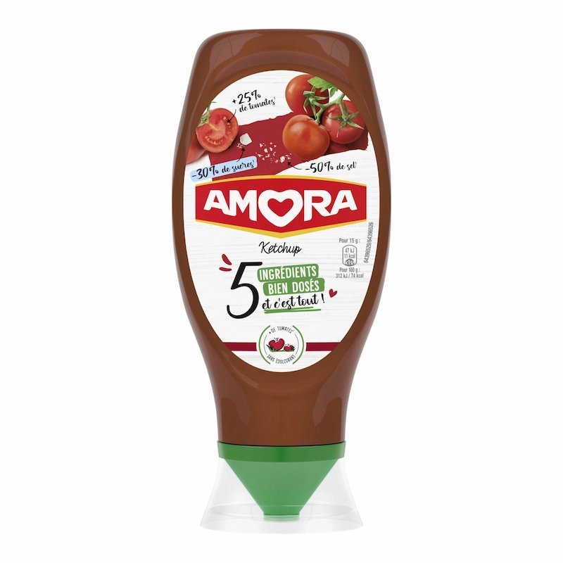 Ketchup AMORA Maroc, Ketchup naturel Casablanca, Sauce tomate simple, Condiment français, Ketchup flacon souple, Sauce pour frites et burgers, Ketchup sain Maroc.