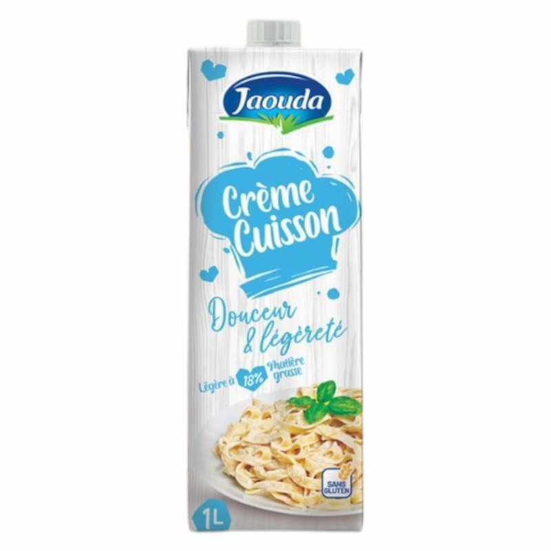 Crème de cuisson Jaouda, crème légère 18%, crème cuisine Maroc, crème culinaire 1L, crème de cuisine pour tajine, crème pour pâtes, crème pour sauce, crème Jaouda Casablanca, crème cuisson pas chère Maroc, ingrédients cuisine Jaouda, crème culinaire légère, crème 18% MG.