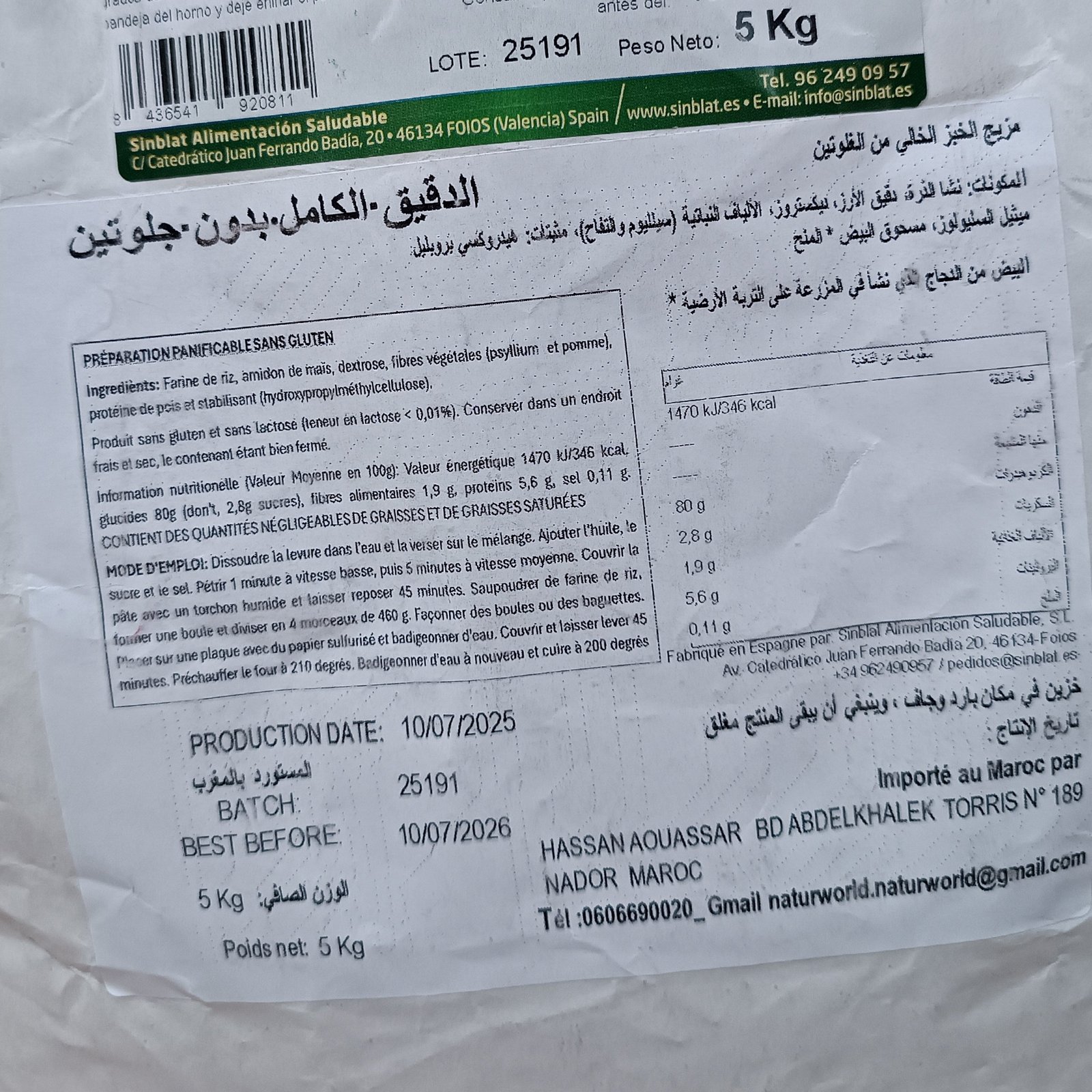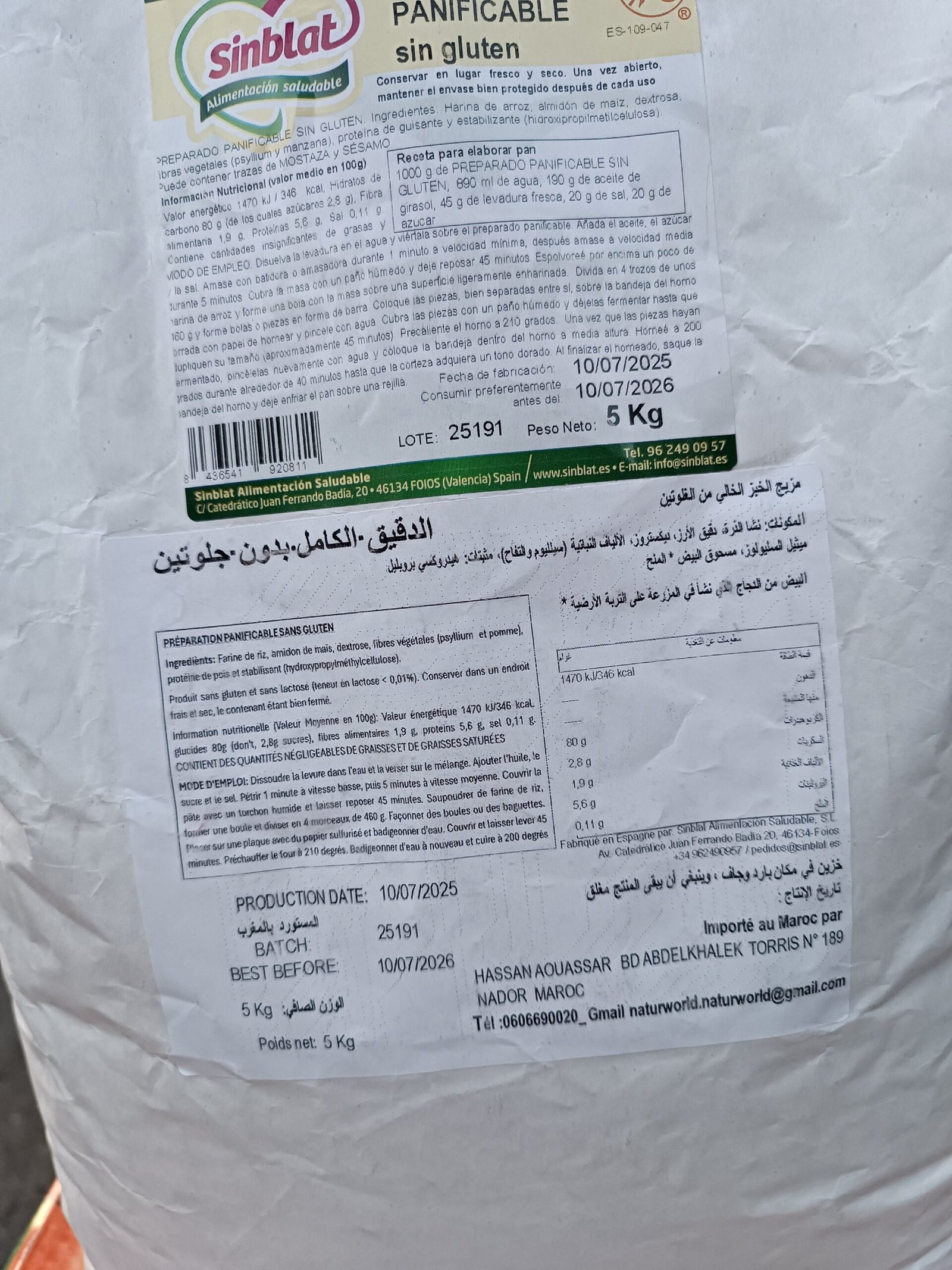 📌 Disponible Chez Alghandour Market à Casablanca – La Farine Complète Sans Gluten Sinblat 5 kg est la solution idéale pour une cuisine saine, gourmande et sans gluten, adaptée à toute la famille et aux professionnels.