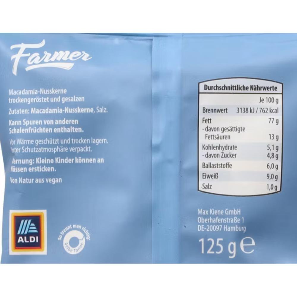 Farmer Noix de Macadamia 125 g – Noix Macadamia Grillées & Salées