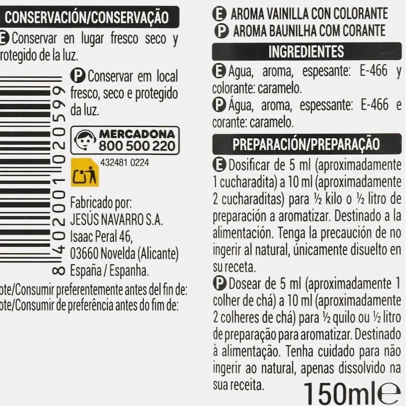 - Hacendado Arôme Vanille 150ml – Idéal pour Gâteaux et Boissons