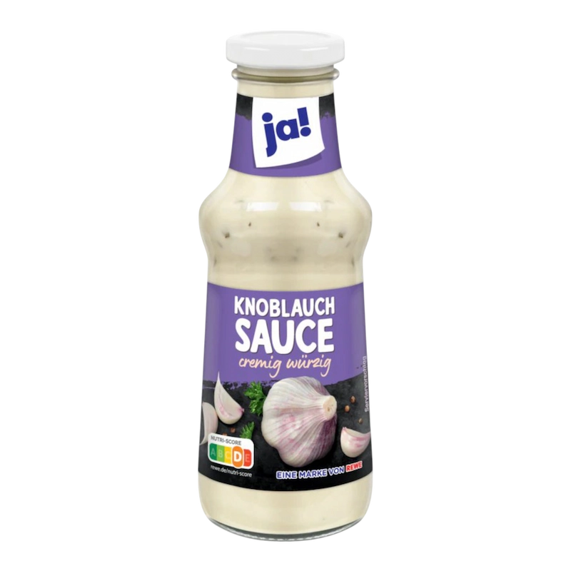Ja Sauce Ail Knoblauch 250 ml est une sauce à l’ail proposée par la marque « Ja », parfaite pour accompagner une variété de plats.