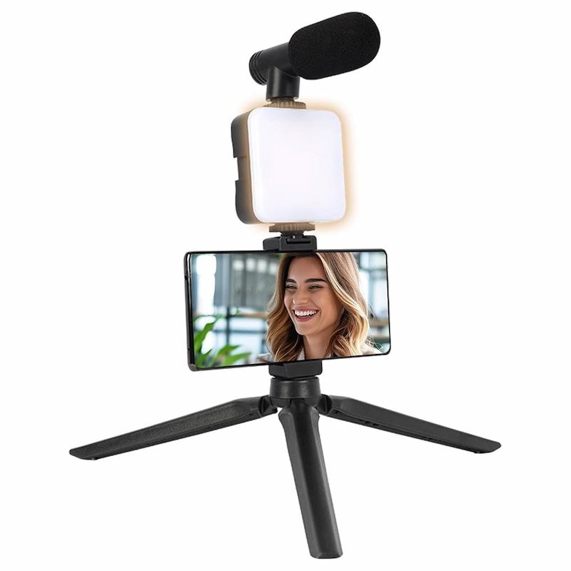 kit vlogging smartphone, micro pour téléphone, lumière LED pour vlog, accessoire vidéo mobile, poignée stabilisatrice smartphone, équipement vloggers, kit création contenu mobile, kit youtubeur portable