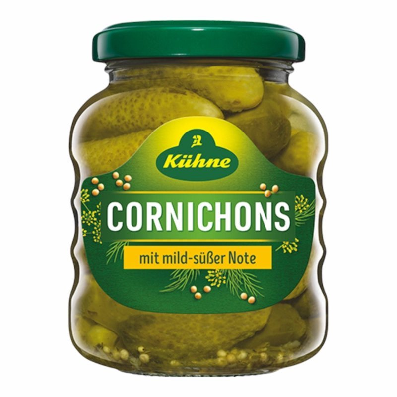 Les ingrédients typiques des Kühne Cornichons Süß incluent généralement :
