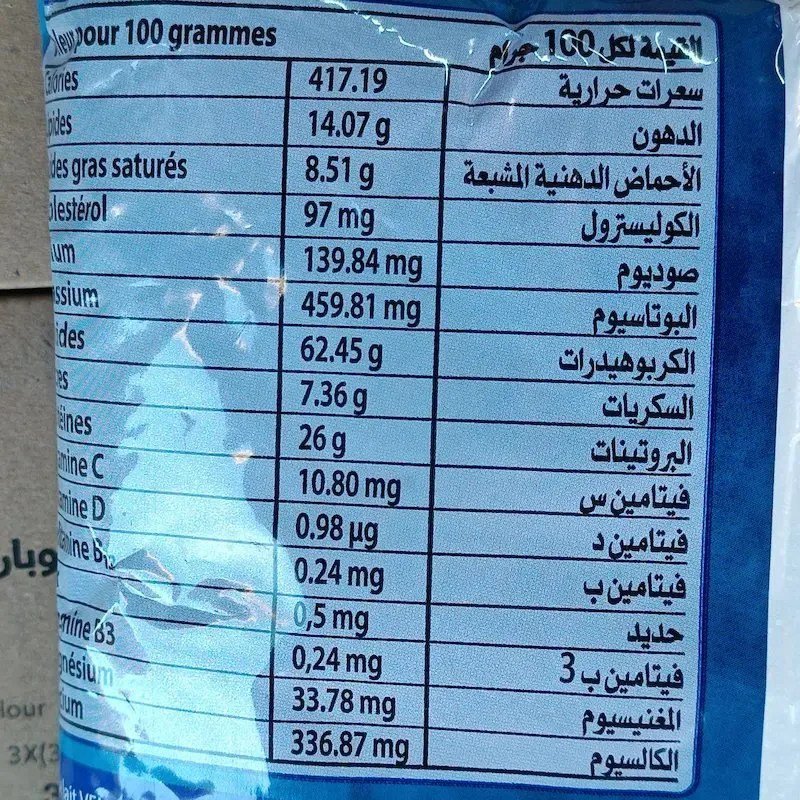 Pour obtenir 1 l de lait liquide : mélanger environ 50 g de poudre avec 450 ml d’eau tiède ou froide. Bien remuer jusqu’à dissolution complète. Produit disponible chez Alghandour Market à Casablanca.