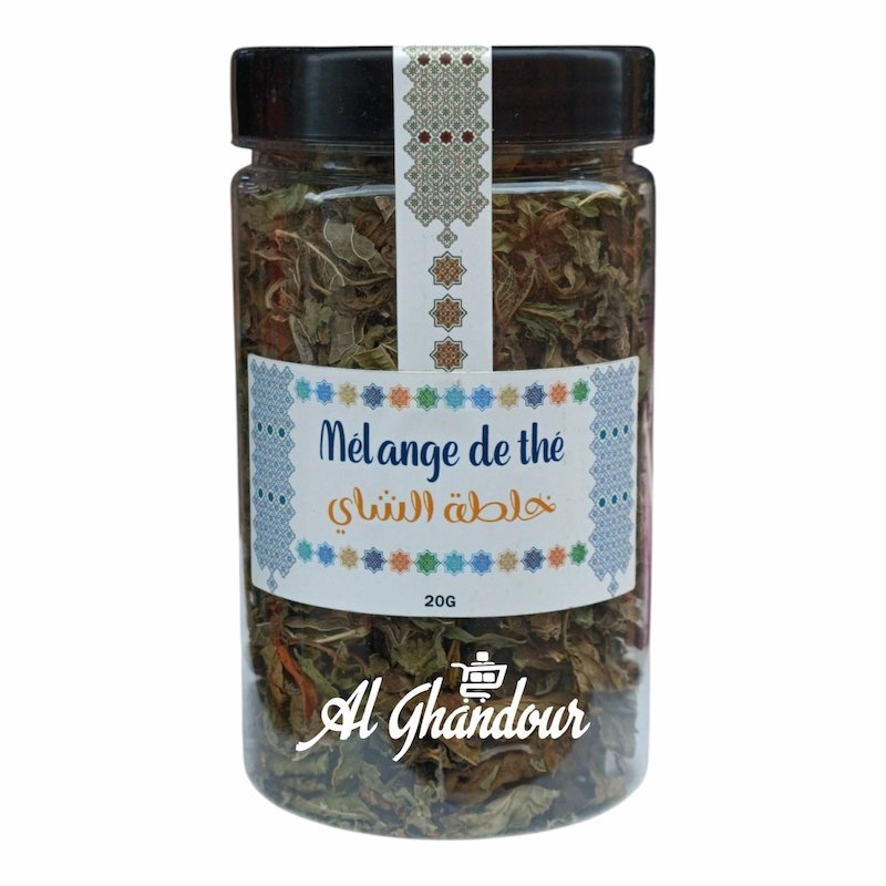 Savourez les saveurs traditionnelles du thé marocain grâce à ce mélange soigneusement sélectionné d’herbes naturelles. Ce mélange réunit la fraîcheur de la menthe, le thym sauvage, ainsi que d’autres plantes aromatiques marocaines bénéfiques qui enrichissent les bienfaits du thé tout en offrant une expérience gustative intense et revigorante. Parfait pour faciliter la digestion, réduire le stress et revitaliser l’organisme. Sans additifs ni conservateurs, ce mélange vous offre la meilleure qualité et authenticité. Profitez d’un thé marocain original, réconfortant et stimulant.