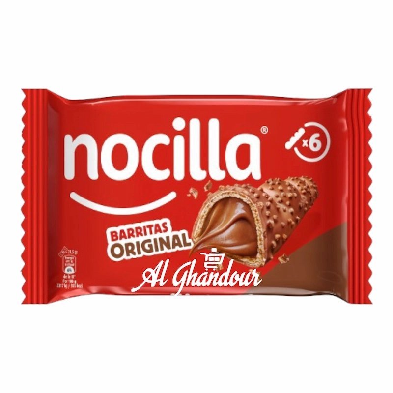 Disponible Chez Alghandour Market à Casablanca.Les Nocilla Barritas Original sont de délicieuses barres chocolatées idéales pour le goûter ou une pause gourmande. Chaque barre combine une tendre pâte chocolat-noisette enveloppée dans une texture moelleuse, pour un plaisir instantané et pratique à emporter partout.