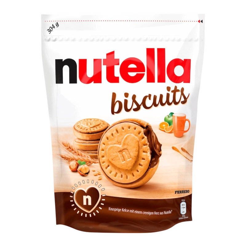 Nutella Biscuits 304 g : des biscuits croustillants avec un cœur fondant au Nutella, pour une pause gourmande et généreuse.