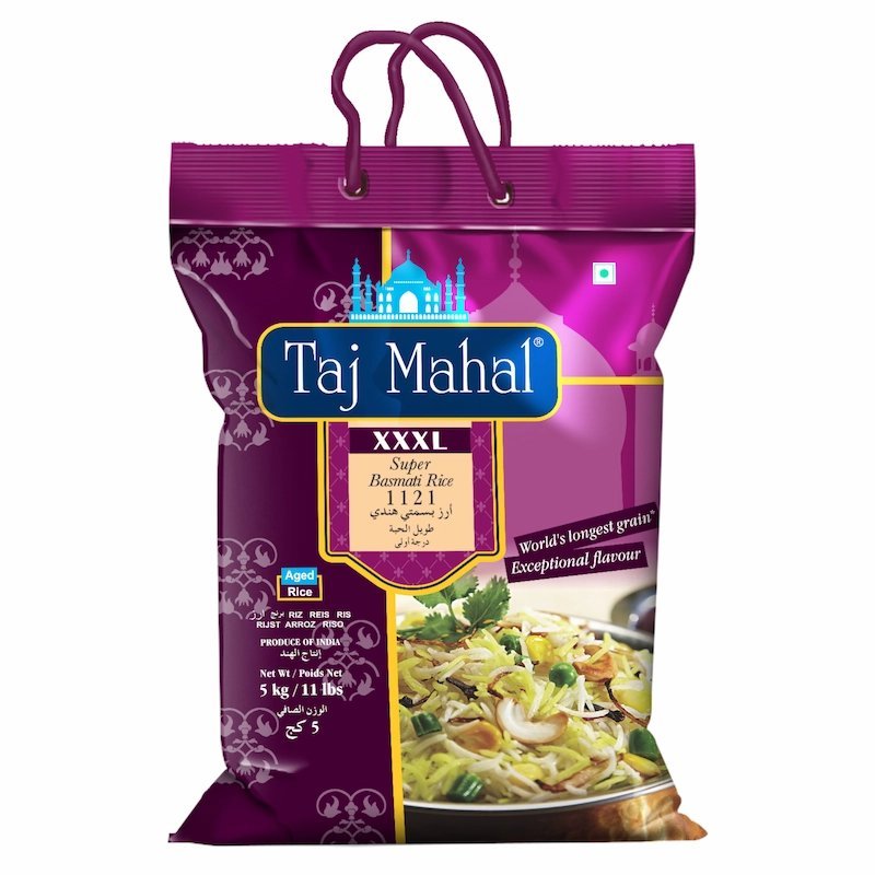 « Riz Basmati Taj Mahal XXXL 5kg » est un paquet de riz basmati de la marque Taj Mahal, pesant 5 kilogrammes. Ce riz est réputé pour ses grains longs, fins et parfumés, offrant une texture légère et aérée une fois cuit. Il est parfait pour accompagner divers plats, notamment les currys, les pilafs et autres recettes traditionnelles, et constitue une option idéale pour les grandes familles ou pour les repas en grande quantité.Le riz Basmati Taj Mahal est naturellement sans gluten, car le riz en général ne contient pas de gluten. Il est donc un choix sûr pour les personnes souffrant de sensibilité au gluten ou suivant un régime sans gluten.