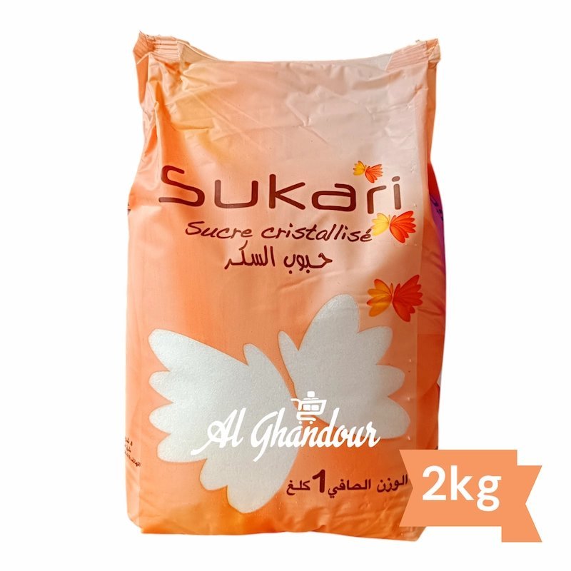 sucre sukari 2kg, sucre granulé maroc, sucre blanc raffiné, sucre pour pâtisserie, sucre pour café et thé, sucre alimentaire de qualité, Sukari Casablanca, sucre pur sans additifs, sucre pour confiture, sucre Alghandour Market.