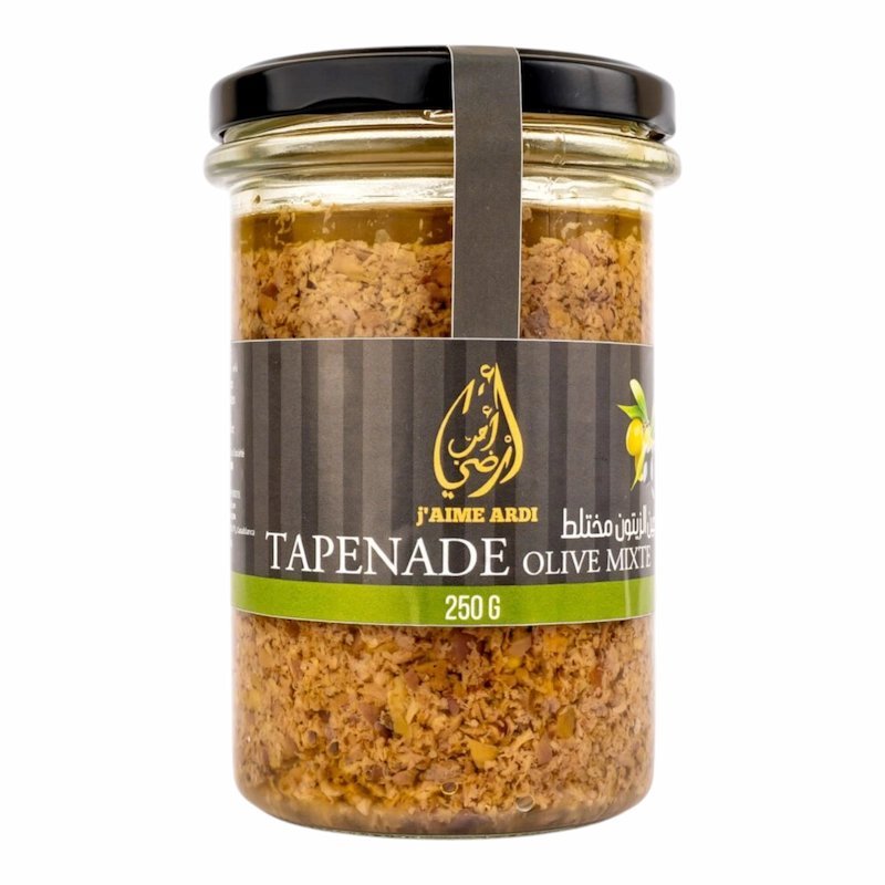 La Tapenade d’Olives Mixtes 250 g est Disponible Chez Alghandour Market à Casablanca, votre adresse de référence au Maroc pour des produits méditerranéens de qualité.