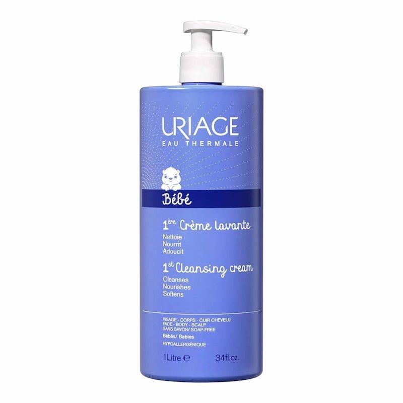 Uriage Bébé crème lavante, gel lavant nourrisson, nettoyant doux bébé, crème lavante sans savon, soin bébé Uriage, hygiène bébé peau sensible, 1ère crème lavante 1L