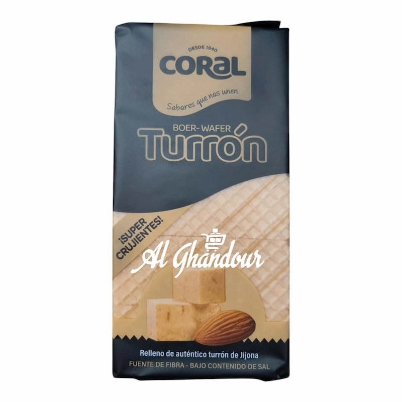 Disponible Chez Alghandour Market à Casablanca — Découvrez le Wafer Coral Boer Turron Pico 150 g, un délicieux biscuit croustillant garni de turron aux éclats de noix et chocolat. Parfait pour une pause gourmande, un snack à tout moment de la journée ou pour accompagner votre café ou thé.